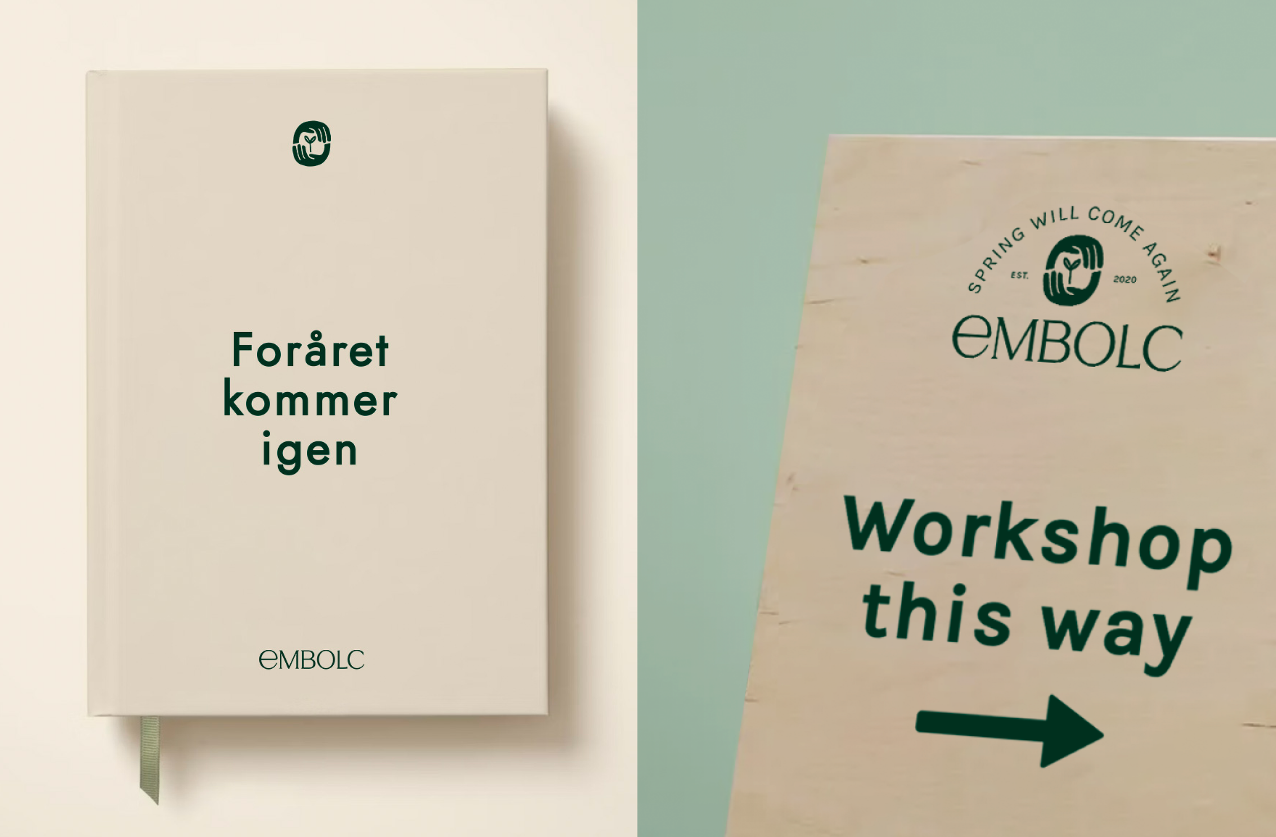The word ‘embolc’ means ‘in the belly’, and refers to the fertile interior of Mother Earth where small spring shoots are sprouting. It is also one of the four Celtic fire festivals - one that celebrates the return of light after a long winter. A spring shoot, sheltered by balanced interlocking hands forms the brandmark, communicating the nurturing mission of the organisation and attaching meaning to the wordmark.